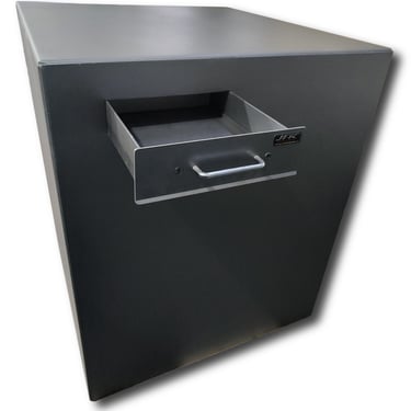 Caja fuerte, buzón, la caja tiene un cofre adentro donde se deposita lo que se coloca en el buzón, pudiendo tener la caja abierta pero lo del buzón bajo llave, tiene un estante fijo y otro con corredera para facilitar su uso, también posee un cajón para diversos usos.