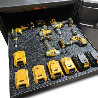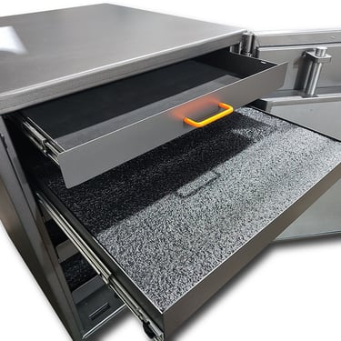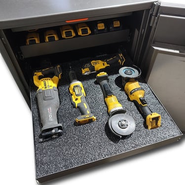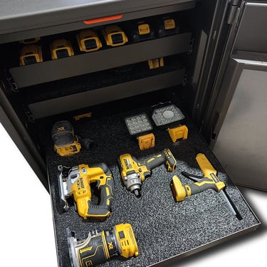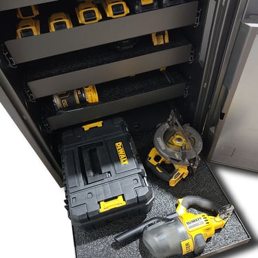 Caja fuerte ideal para el resguardo de herramientas de todo tipo, consta de 4 estantes tipo bandeja con corredera reforzada y un cajón, los estantes vienen con una plancha de espuma de polietileno de 4cm de espesor para troquelar y mantener sus herramientas perfectamente guardadas.